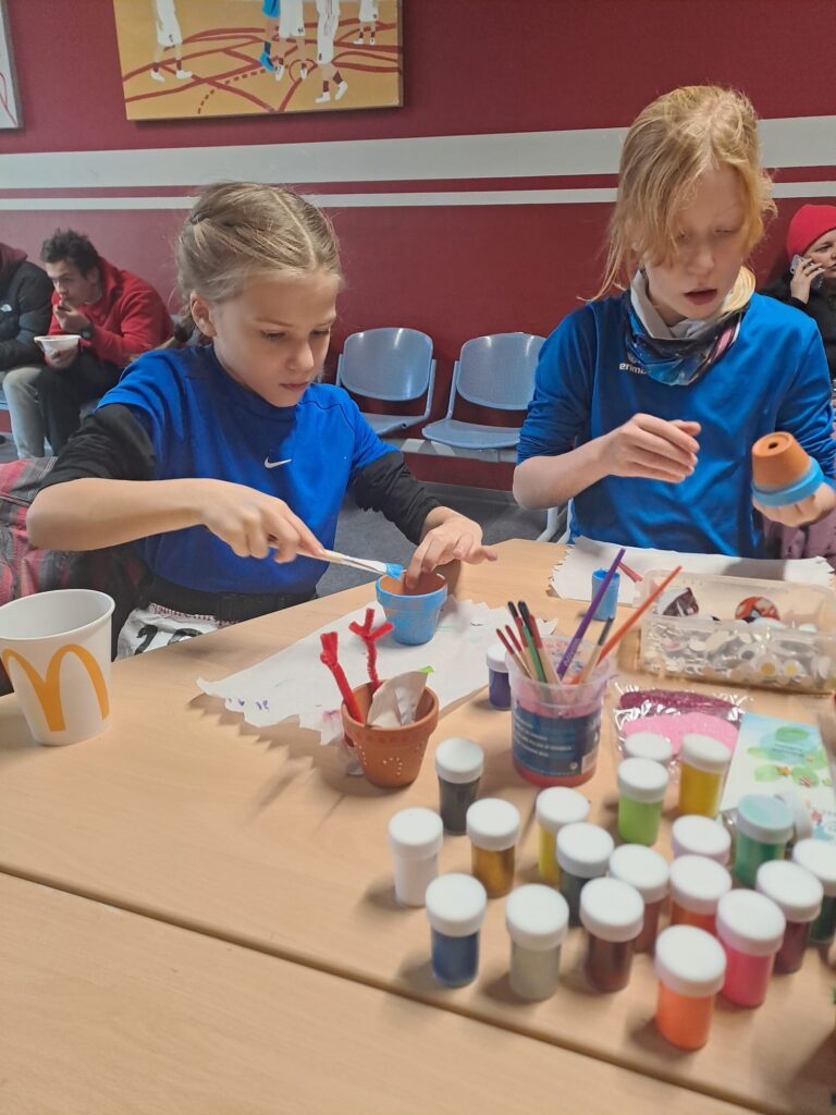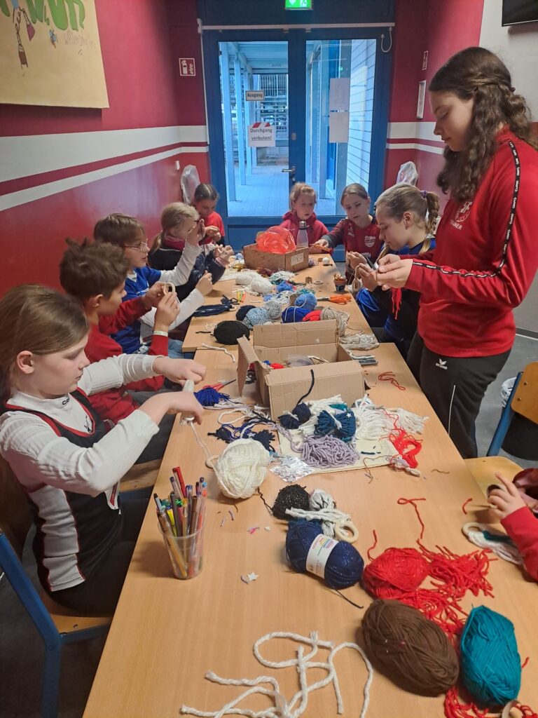 So kam es, dass die Aula, in der sonst Abiturienten ihre Vorprüfungen schreiben, als Aufenthaltsraum für die Kinder mit ihren Trainern und die Korridore im Schulgebäude als Bastel- und Verpflegungsstände dienten.