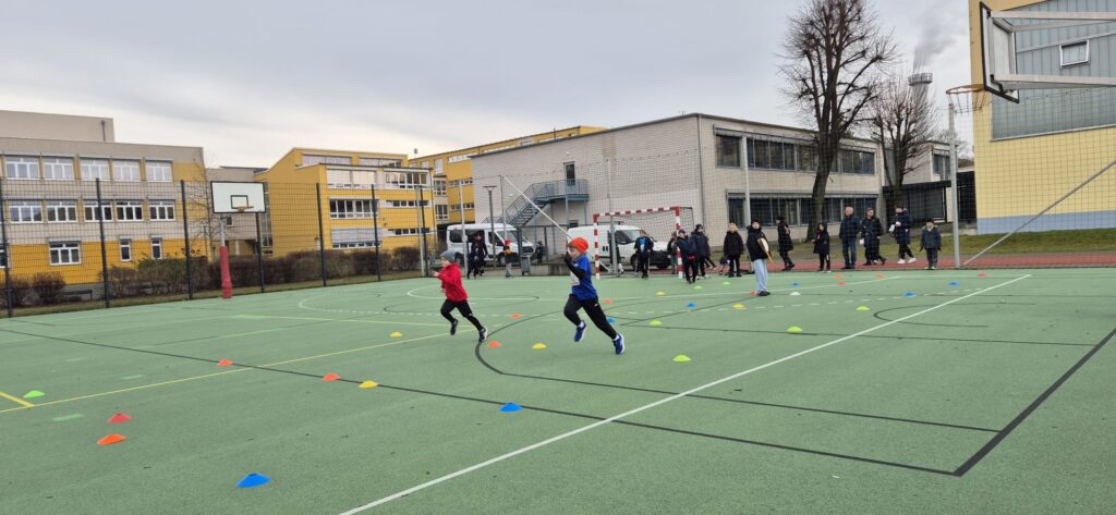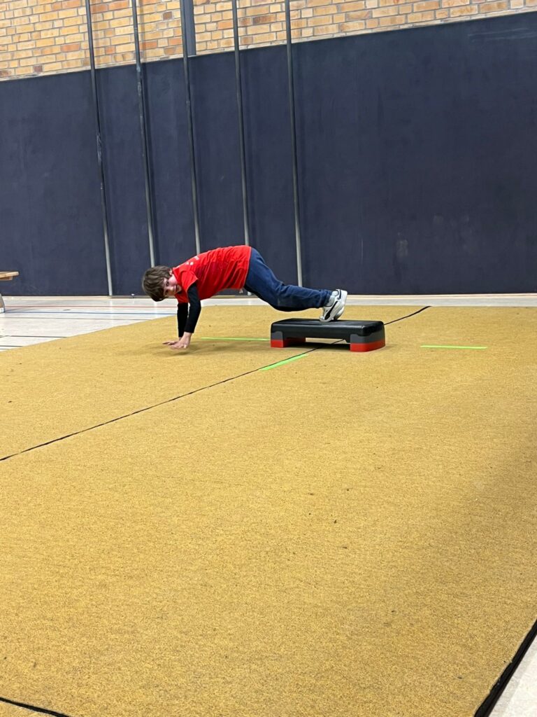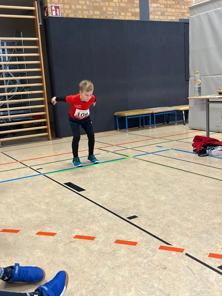 Die Wettbewerbe im Gewandtheitslauf, Liegestützkreisel und Schlusssprunge fanden wiederum in der Halle statt, während draußen auf dem Sportplatz die Kinder im 30m-Parallelsprint, Ballweitwurf und 1000m-Ausdauerlauf ihr Bestes gaben.
